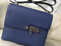 エルメスVerrou23CMエルメス7Eブライトブルーオリジナルパームグレインレザーピストルバッグシルバーバックル