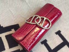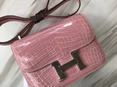 エルメスコンスタンス18CMエルメス5Zインディアンピンクの光沢のあるクロコダイルレザーコンスタンスバッグシルバーバックル