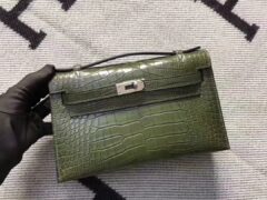 エルメスエルメスクロコダイルレザークラッチフォレストグリーンマットスクエアクロコダイルレザーミニケリーバッグミニケリー22cm
