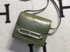 エルメスバッグ公式サイトエルメスオリーブグリーンマットクロコダイルレザーピッグノーズバッグRoulis18CMシルバーバックル