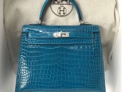 エルメスケリーレディースバッグエルメスシャイニークロコダイルスキンケリーバッグKelly25CM7Wイズミールブルーシルバーバックル