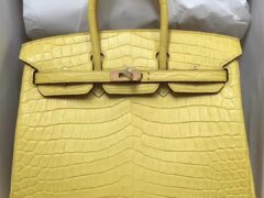 エルメスバッグ公式サイトエルメス9RレモンイエローシャイニークロコダイルレザープラチナバッグBirkin25CMゴールドバックル