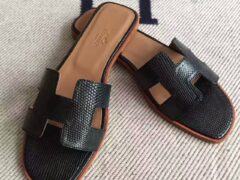 純粋な手作りエルメスの新しい輸入トップトカゲ革スリッパ35-42ヤードCK89黒