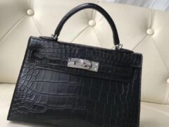 エルメスミニケリーバッグ2世代エルメスミニケリー-2CK89ブラックマットクロコダイルレザーシルバーバックル