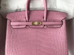 エルメスバーキンバッグエルメス5PチェリーブロッサムパウダートップマットクロコダイルレザープラチナバッグBirkin25CMゴールドバックル