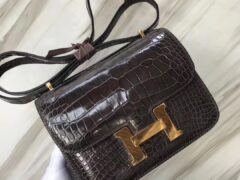 エルメスバッグ公式サイトエルメスシャイニークロコダイルレザーレディースバッグConstance18CMCK88グラファイトグレーゴールドバックル