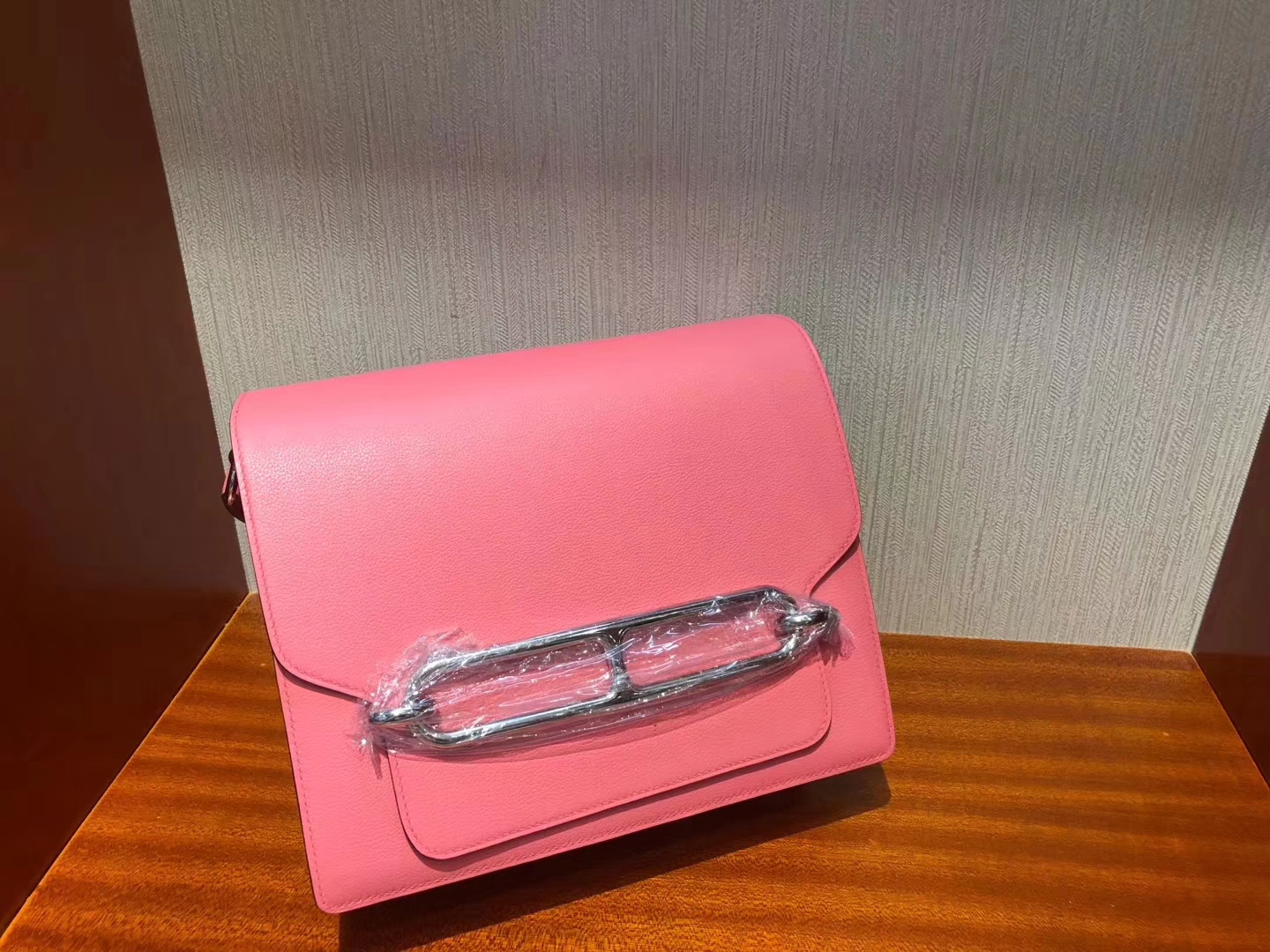 ブランド:エルメス;スタイル:ルーリスピッグノーズバッグ;素材:オリジナルイブカラーレザー;カラー:8Wリップスティックパウダーローズアザリー;サイズ:24cm;ハードウェア:シルバーバックル;アクセサリー:ダストバッグ;用途:ショルダーバッグ、斜めショルダーバッグ