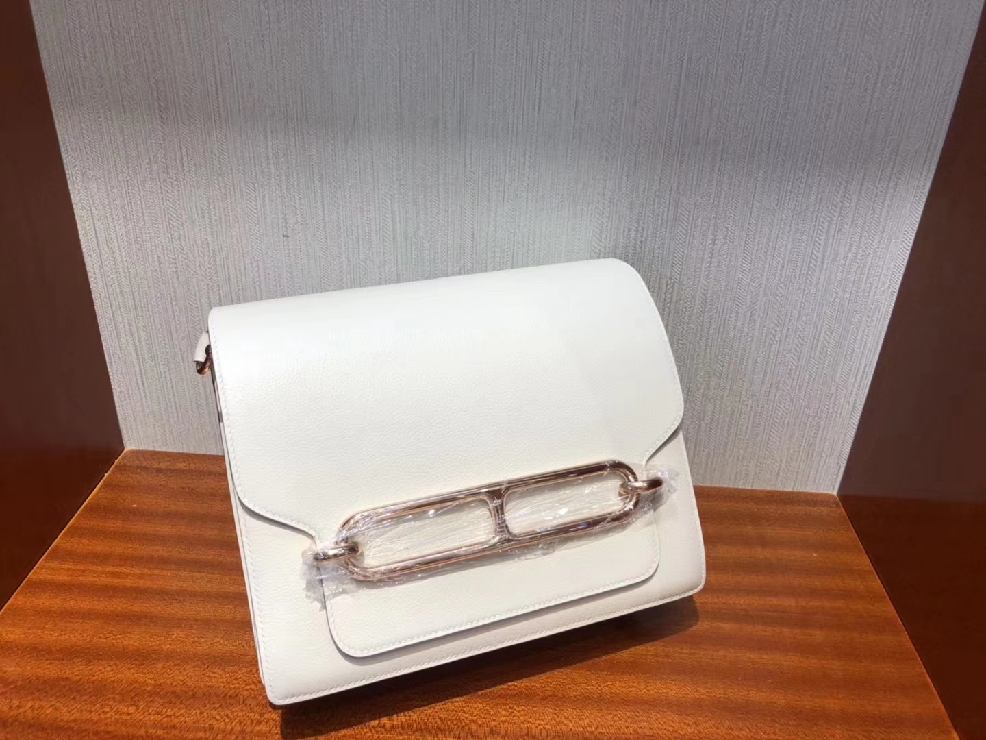 ブランド:エルメス;スタイル:ルーリスピッグノーズバッグ;素材:オリジナルイブカラーレザー;カラー:CK10ミルクシェイクホワイトクレイ;サイズ:24cm;ハードウェア:ローズゴールドバックル;アクセサリー:ダストバッグ;用途:ショルダーバッグ1つ、メッセンジャーバッグ