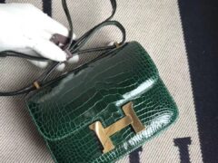 エルメスコンスタンス18CMエルメスCK67エメラルドシャイニークロコダイルレザーコンスタンスバッグゴールドバックル