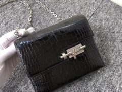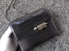 カスタムエルメスVerrou17.5cmエルメスCK88グラファイトグレーシャイニークロコダイルレザーピストルバッグシルバーバックル