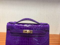 エルメスMinikelly22CMエルメス5Lエクストリームパープル光沢スクエアクロコダイルレザーミニケリーバッグゴールドバックル