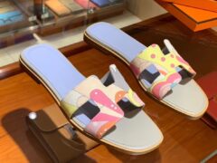 エルメススリッパカスタムエルメスサンダルタートルドーブグレーとレイクウォーターブルーインソールキャンバスアッパーレディーススリッパ