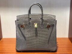 エルメスバーキン25CMC81ターコイズグレーシャイニークロコダイルレザーゴールドバックル