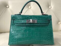 スポットエルメスエルメス6QエメラルドグリーンブライトクロコダイルレザーミニケリーバッグMinikelly22CMシルバーバックル