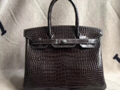 希少エルメスバーキンパールグレーアリゲータークロコダイル25CMシルバー金具