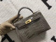 スポットエルメスミニケリーポシェットエルメス1Qミルクセーキパウダーシャイニークロコダイルレザーミニケリーバッグゴールドバックル