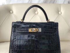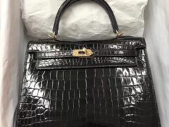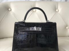 スポットエルメスケリー25CMエルメスCK89ブラックシャイニークロコダイルスキンケリーバッグゴールドバックル