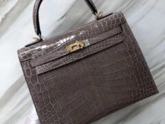 スポットエルメスケリーバッグ価格エルメスケリー25CMCK81タートルドーブグレー光沢のあるクロコダイルレザーゴールドバックル