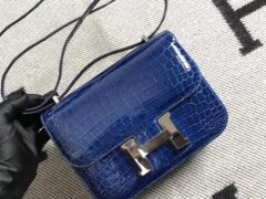 スポットエルメスコンスタンス19CMエルメスロイヤルブルー光沢のあるクロコダイルレザースチュワーデスバッグシルバーバックル