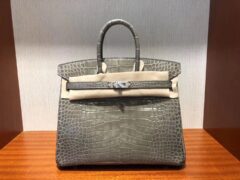 エルメスバーキン25CMエルメスCK18ターコイズグレーシャイニークロコダイルレザーバーキンシルバーバックル
