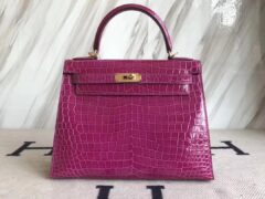 エルメスバッグ公式サイトエルメスオーストラリアベイクロコダイルスキンKelly28CMケリーバッグJ5アラビアンナイトピンクパープルゴールドバックル