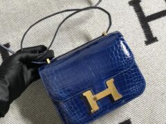 スポットエルメススチュワーデスバッグサイズエルメスコンスタンス19CMロイヤルブルーシャイニークロコダイルレザーゴールドバックル