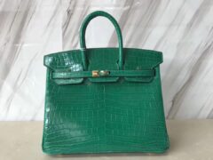 エルメスバーキン25CM6Qエメラルドグリーンシャイニークロコダイルレザーゴールドバックル