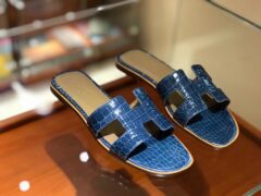 エルメススリッパカスタムエルメスプルシアンブルーシャイニークロコダイルレザースリッパサンダルレディースモデル35〜41
