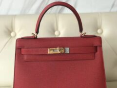 エルメスケリー28CMエルメスQ5フラッグレッドオリジナルパームグレインレザーアウターシームケリーバッグゴールドバックル/シルバーバックル