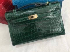 エルメスクロコダイルレザークラッチエルメスミニケリー2世代エメラルドスクエアクロコダイルレザーゴールドバックル