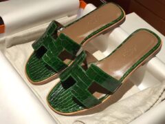エルメスレディースシューズ価格エルメス輸入光沢クロコダイルレザーレディースフラットスリッパ35〜41エメラルドグリーン