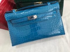 エルメスMinikelly22CMエルメスシャイニークロコダイルレザーミニケリーバッグ7Wイズミールブルー