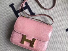 スポットエルメスコンスタンス19CMエルメス1Qミルクセーキパウダーシャイニークロコダイルスキンスチュワーデスバッグゴールドバックル