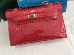 エルメスミニケリー22cmエルメスCK95フェラーリレッドシャイニークロコダイルレザーミニケリーバッグゴールドバックル付き