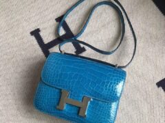 スポットエルメススチュワーデスバッグ価格エルメスコンスタンス19CM7Wイズミールブルーシャイニークロコダイルレザーシルバーバックル