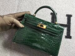 エルメスクラッチエルメスシャイニークロコダイルレザーミニケリーCK67エメラルド