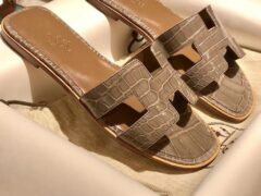 広州白雲皮具城エルメスエルメスエレファントグレー光沢のあるクロコダイルレザーレディーススリッパ35-41
