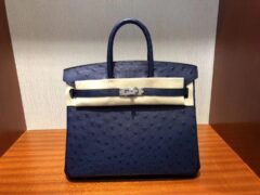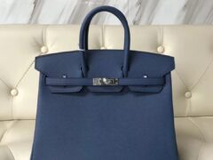 エルメスバーキンレディースバッグエルメス輸入オーストリッチレザープラチナバッグBirkin25CM7Kサファイアブルーシルバーバックル