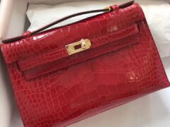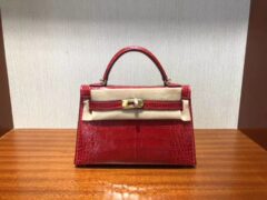 エルメスMinikelly22CMエルメスCK95フェラーリレッドシャイニークロコダイルレザーミニケリーバッグゴールドバックル