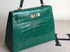 エルメスクロコダイルスキンケリーバッグエルメスケリー25CM6Qエメラルドグリーン光沢のあるクロコダイルスキンゴールドバックル
