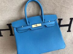 エルメスの新しいレディースバッグエルメスB3タンザニアブルーオリジナルエプソムレザーBirkin30プラチナバッグゴールドバックル