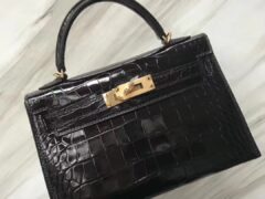 スポットエルメスミニケリーバッグ2世代エルメスミニケリー-2CK89ブラックシャイニークロコダイルレザーゴールドバックル