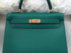 エルメスケリーバッグサイズエルメスオリジナルエプソムレザーKelly25CMZ6マラカイトグリーンゴールドバックル
