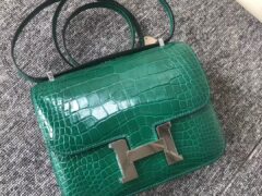 スポットエルメススチュワーデスバッグ価格エルメスコンスタンス18CM6Qエメラルドグリーンシャイニークロコダイルレザーシルバーバックル