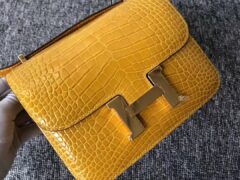 スポットエルメスエルメス9DアンバーイエローブライトクロコダイルスキンConstance18CMコンスタンスゴールドバックル