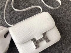 カスタムエルメスコンスタンス18CMエルメス01ピュアホワイトマットクロコダイルレザーコンスタンスバッグリザードバックル