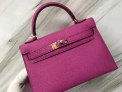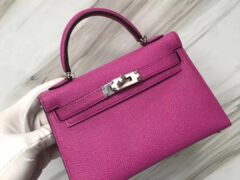 エルメスレディースバッグカスタムエルメスミニケリー2世代I9マグノリアパウダーパームグレイン牛革ミニケリーバッグ2世代シルバーバックル
