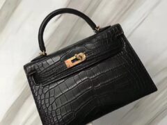 エルメスMinikelly19CMエルメスCK89ブラックマットクロコダイルレザーミニケリーバッグ2世代クラッチシルバーバックル