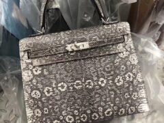 エルメスケリー25CMエルメス01ナチュラルカラーインポートリザードスキンケリーバッグアウターシームシルバーバックル