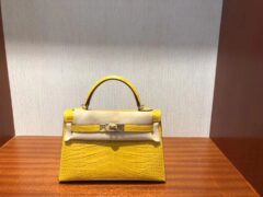 エルメスMinikelly22CMエルメス9Dアンバーイエロースウィフトレザーミニケリーバッグゴールドバックル